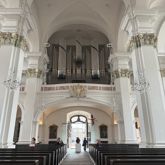 During our time here we got the chance to visit the Jesuit church (Jesuitenkirche Heiliger Geist und St. Ignatius). Mass had just finished so the air was still thick with the wonderful smell of incense. It was a beautiful church – simple and renovated in the 1950s with simple pews and a large marble square holy water stoop at the entrance; the white walls not spoilt with huge amounts of artwork or intricate statues. I was very much struck by the simplicity especially after the ‘noise’ of some of the very over the top decors in places like Passau.