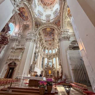 Today we're in Passau on the Austrian/German border in the region of Bavaria. The cathedral of St Stephen boasts the world's largest pipe organ (more HERE). The photo to the left shows where the pipes should be but the organ is currently undergoing an extensive renovation that will keep it out of action until 2028. There are, however, like any good cathedral, a few other organs to choose from.